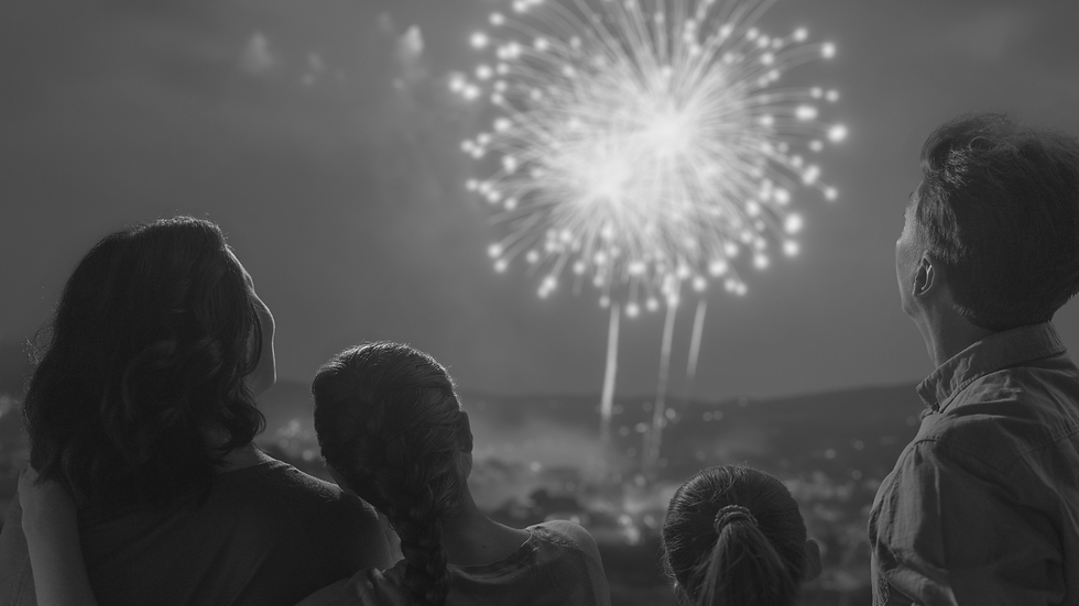 Eyes alit at the bursts in the sky